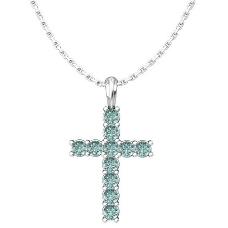 Cross Birthstone Pendant on Sterling Silver Chain, March